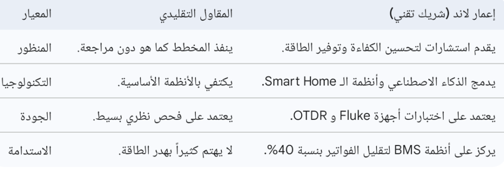 3. مقارنة: المقاول التقليدي مقابل شريك الحلول المتكاملة (إعمار لاند)