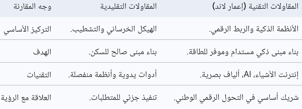 6. مقارنة: المقاولات التقليدية مقابل المقاولات التقنية الحديثة