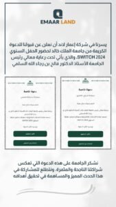تأتي هذه الدعوة تقديراً للشراكات الناجحة والمستمرة التي تجمع إعمار لاند مع الجهات الأكاديمية والتقنية، وحرصاً على تعزيز التعاون وتبادل الخبرات في مجالات التقنية والابتكار والتحول الرقمي.